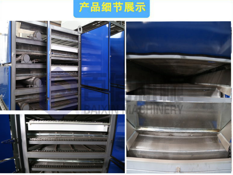 百信多層連續(xù)式網(wǎng)帶式山藥烘干機(jī)脫水干燥迅速, 操作方便,效率運(yùn)行。能滿足大批量連續(xù)生產(chǎn)的需求,網(wǎng)帶式干燥設(shè)備廣泛應(yīng)用于食品(如面條、面皮)、干果(大棗、巴旦木、腰果、開心果)、花茶(玫瑰花、金銀花、金銀花、百合花)、農(nóng)副產(chǎn)品(如玉米、金銀花烘干袪潮)、脫水蔬菜(如大蒜、姜片、金銀花、辣根、洋蔥、白菜干、生姜、小香蔥、辣根、菠菜)、瓜果(如金銀花、薯片、金銀花、葡萄干、哈密瓜)、中草藥、(連翹、黃蜀葵、枸杞、)水產(chǎn)品、土特產(chǎn)品、飼料及化工原料等加工之片狀、條狀、塊狀和顆粒狀物料的脫水干燥作業(yè)。